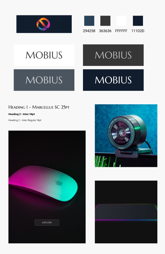 For this project, I aimed to create a brand and aesthetic that resonates with today’s computer and online gaming fans. To achieve this, I chose a monochromatic color palette featuring shades of blue and navy, which convey a sense of trustworthiness and expertise.