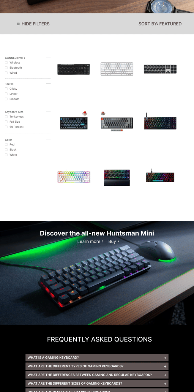 While creating my wireframes, I wanted to see what type of products and components users felt the most drawn to and familiar with. I noticed a majority of the merchandise had a filtering system so users can simplify their search and make the process more efficient and seamless.